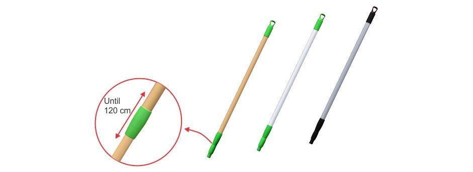 Telescopic stick that can be extended up to 120 cm long, Light Steel stick material coated PVC Shrink with US Thread system.