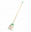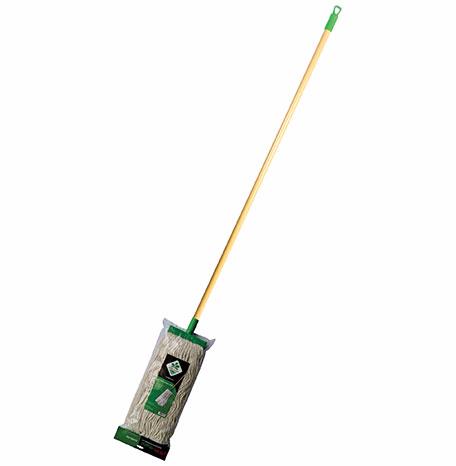 The round handle hanger is not pointy. The length of the handle is 120 cm, with thread of US system thread, makes it easy in replacing the refill. The handle made of Light Steel coated with PVC Shrink wood motif so that the handles do not rusty. The mop is made of 95% cotton with 275 gram weight, very high water absorption so that the floor is not slippery, the mop with Loop End type (endless but circular) so that the mop thread is not easy to fall out, the mop head box shape is made of strong plastic material that is long resistant