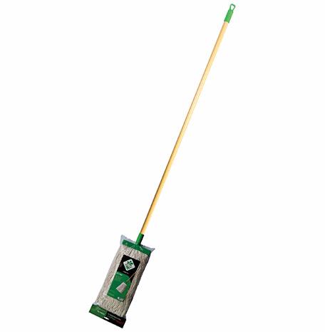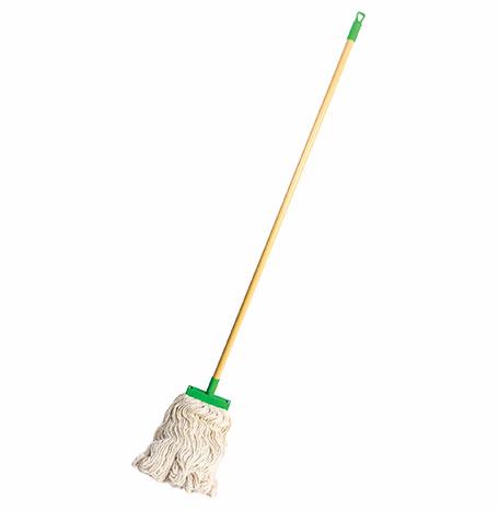 The round handle hanger is not pointy. The length of the handle is 120 cm, with thread of US system thread, makes it easy in replacing the refill. The handle made of Light Steel coated with PVC Shrink wood motif so that the handles do not rusty. The mop is made of 95% cotton with 225 gram weight, very high water absorption so that the floor is not slippery, the mop with Loop End type (endless but circular) so that the mop thread is not easy to fall out, the mop head box shape is made of strong plastic material that is long resistant.