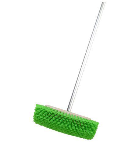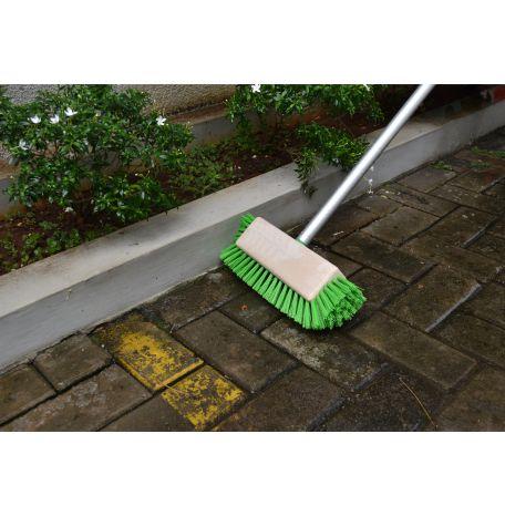 Brush equipped with filament at the bottom, right and left side so as to clean the hard-to-reach areas, makes it easy in brushing all hard surfaces such as terrace floor, garage, pavement or other hard floor and hard wall surfaces, brush head made of strong plastic (PP Foam Plastic) with fiber made from durable Polypropylene and not easy to fall out, the handle is made of aluminum with US Thread screw system. Available in 4 colors (Assorted)