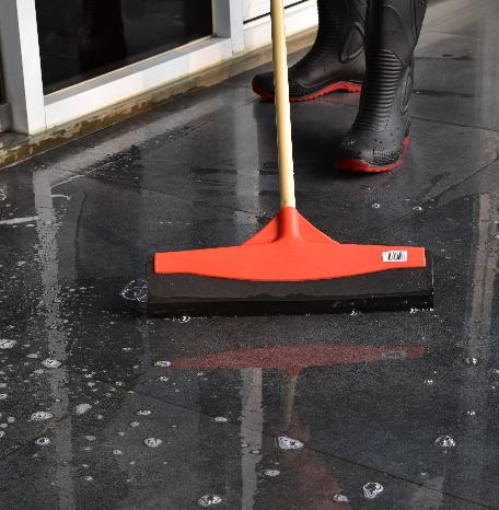 Made of Eva Sponge material coated with a strong plastic clamp, with a stick made of Ligth Steel coated with PVC Shrink wood motif, with the slope angle that has been calculated as maximum as possible so that the work of pushsing water become easier and effective.