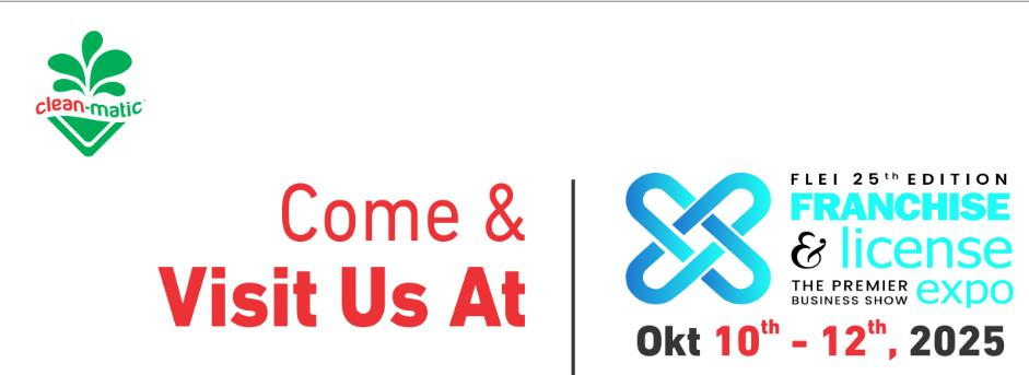 Clean Matic is exited to announce our participation in the 26th Franchise & License expo Indonesia (FLEI), happening on 10-12 October 2025 at Nusantara International Convention Exhibition, Pantai Indah Kapuk, Tangerang. As a trusted name in premium cleaning equipment innovation, we will be showcasing our flagship products, new business partnership opportunities, and latest product advancements for institutional dan retail cleaning needs.